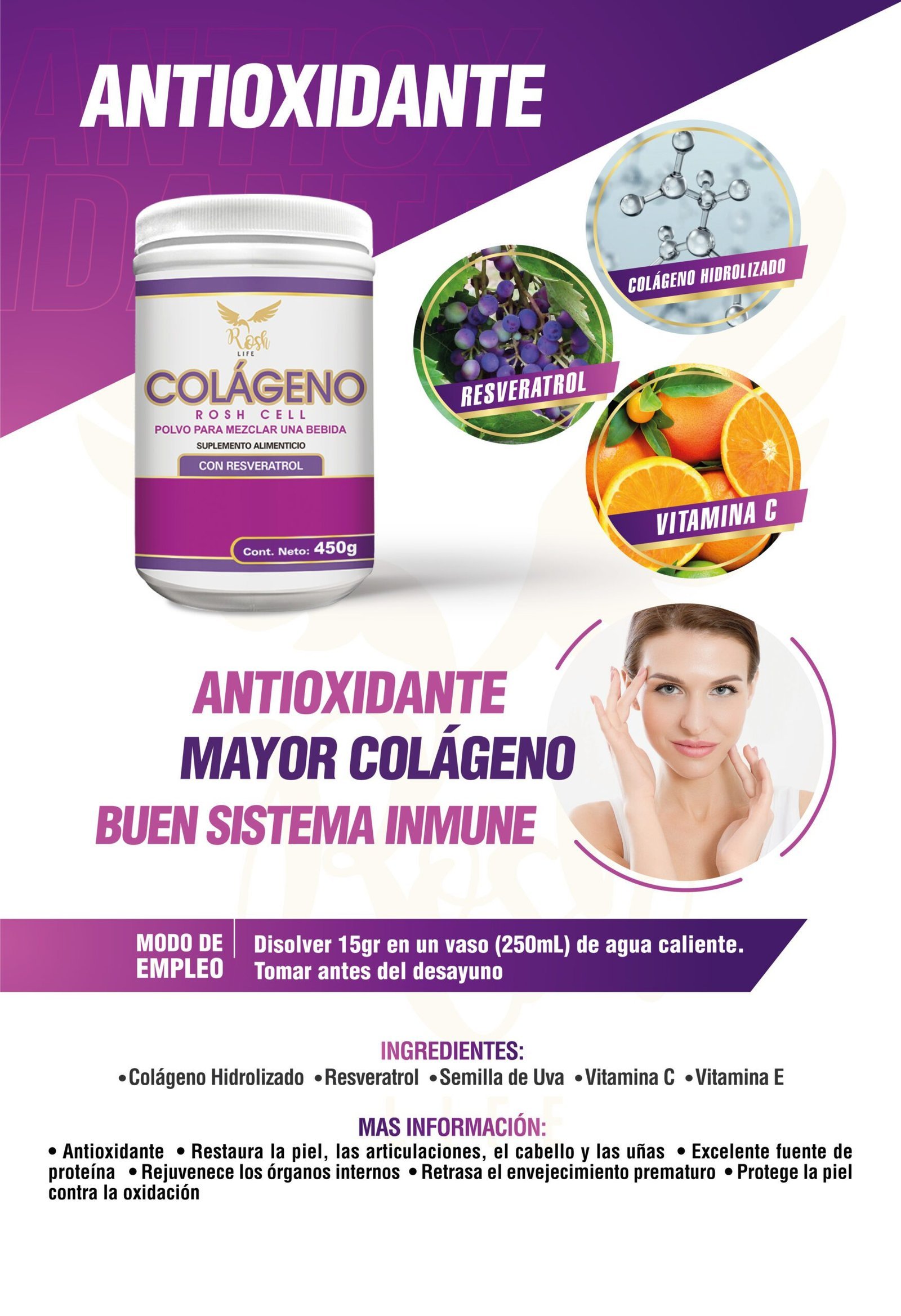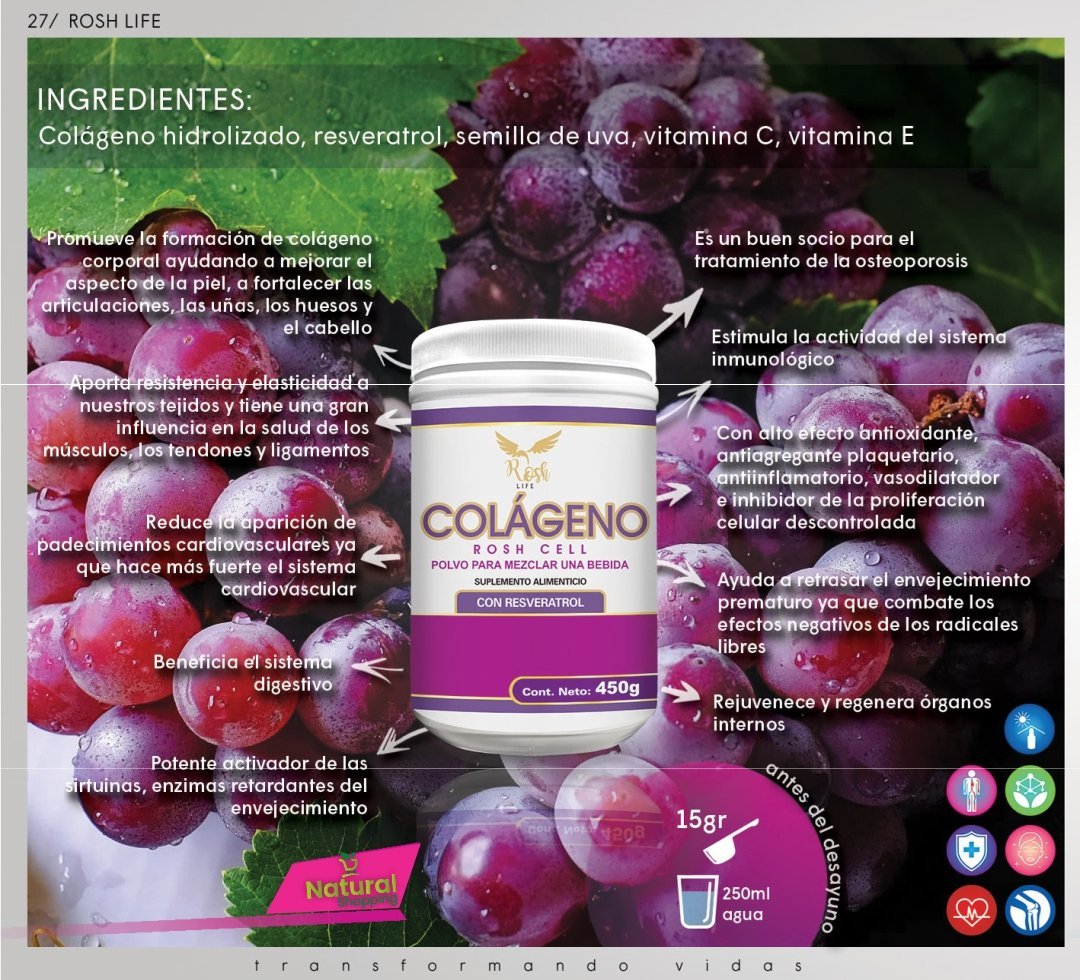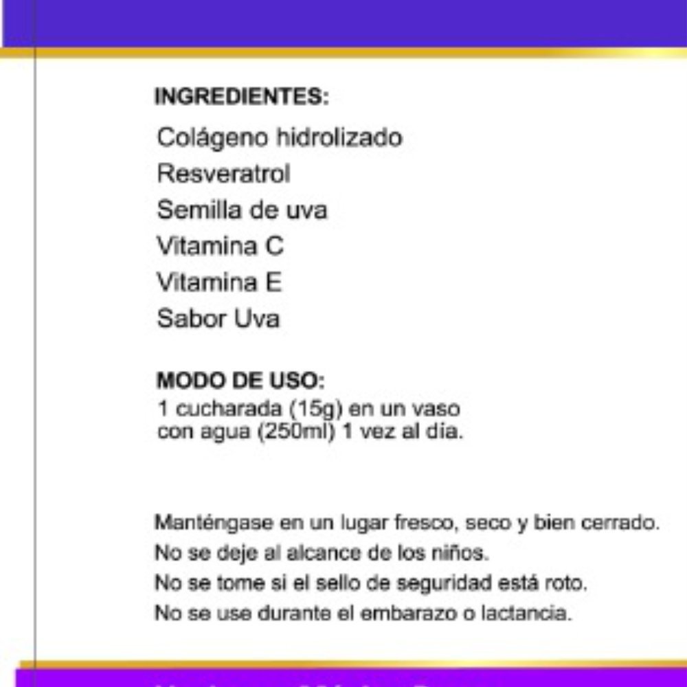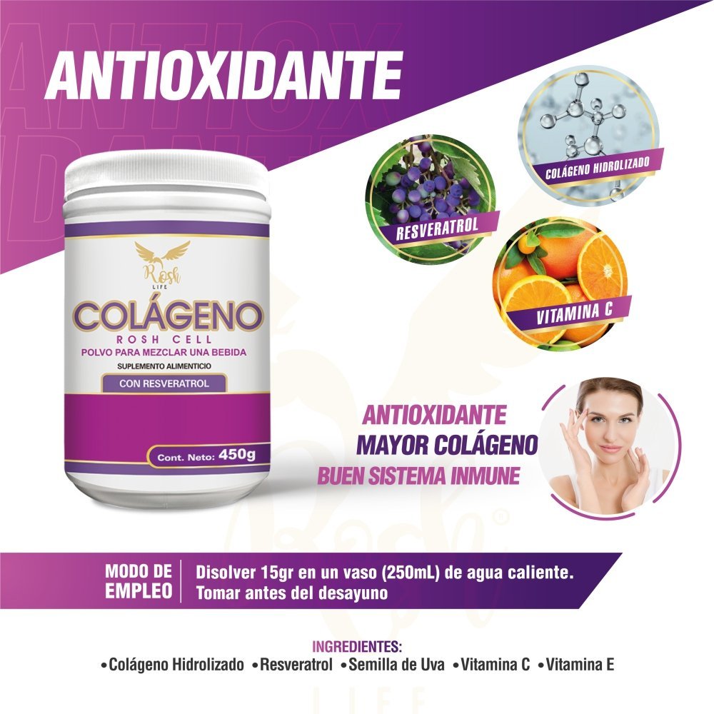 Restaura la piel, las articulaciones, el cabello COLÁGENO CON RESVERATROL FRasco de 450g.