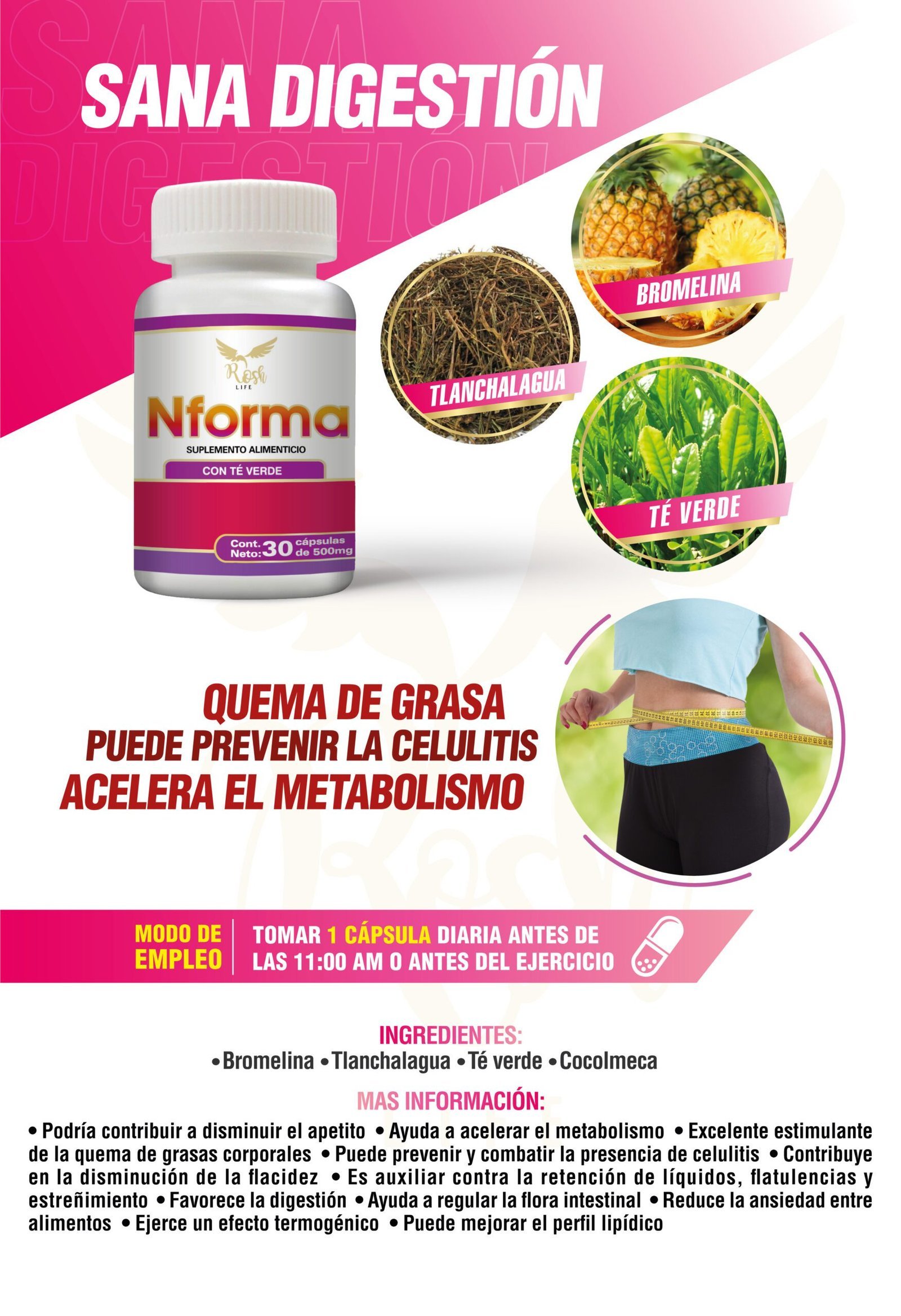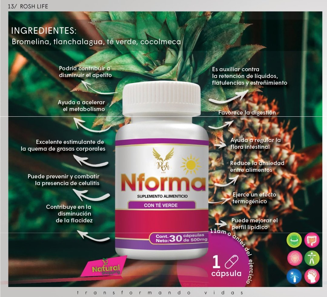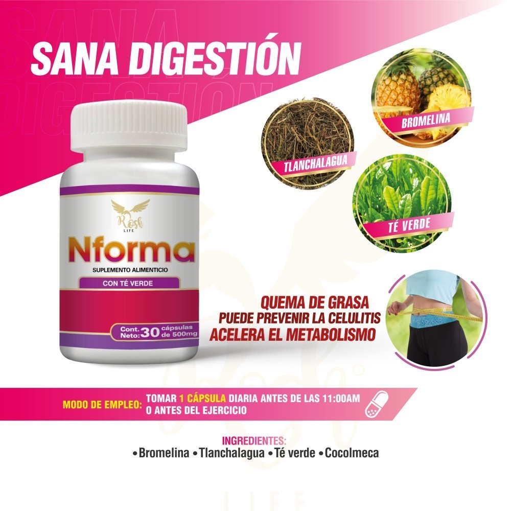 Ayuda prevenir la celulitis, acelerar el metabolismo y quemar grasa Nforma Frasco de 30 cápsulas suplemento alimenticio.