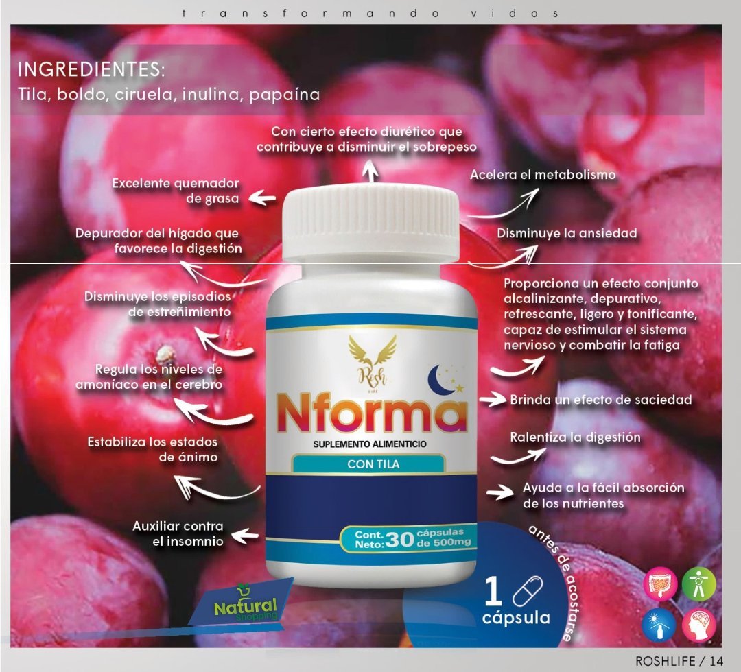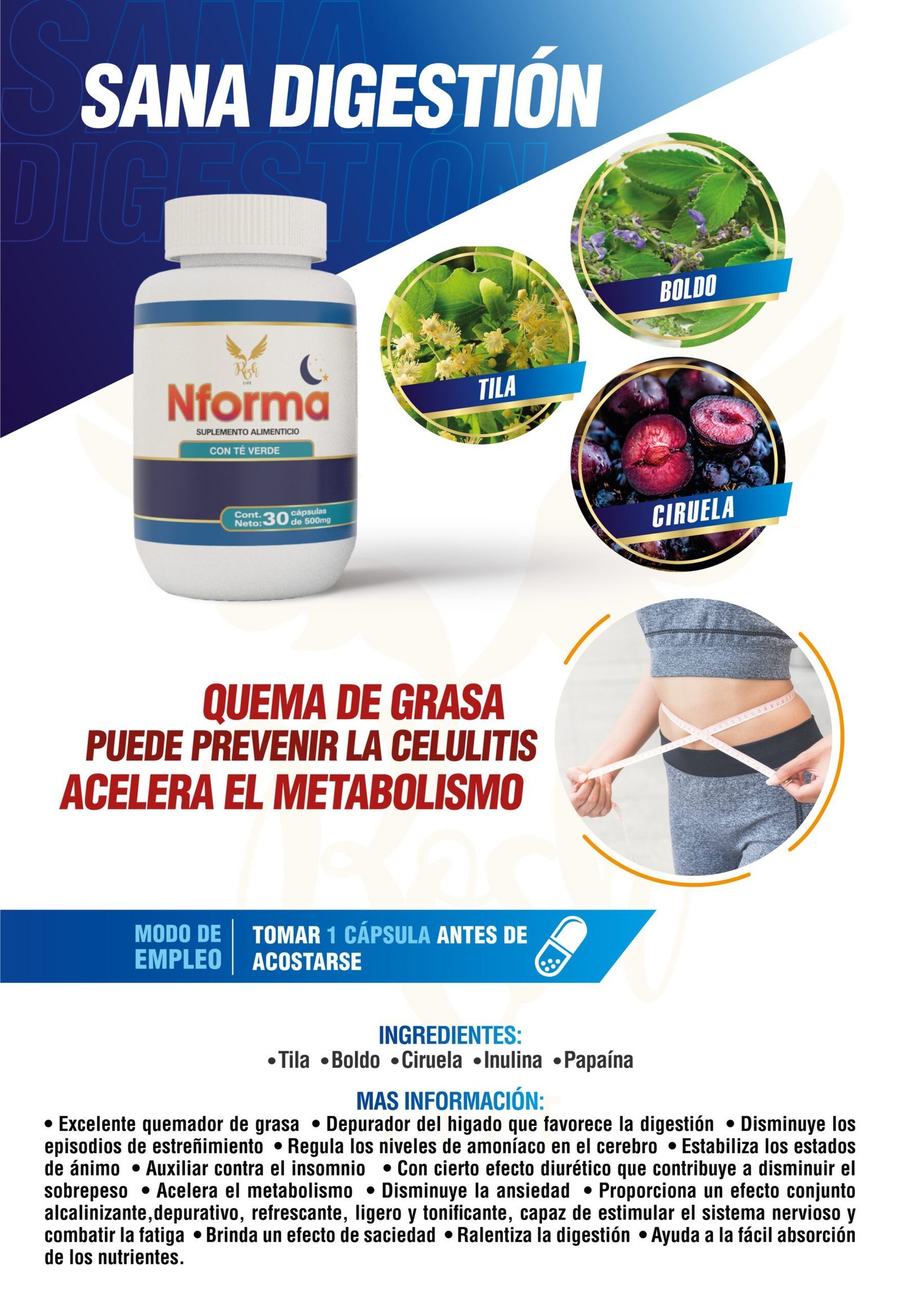 Ayuda prevenir la celulitis, acelerar el metabolismo y quemar grasa Nforma Frasco de 30 cápsulas suplemento alimenticio.