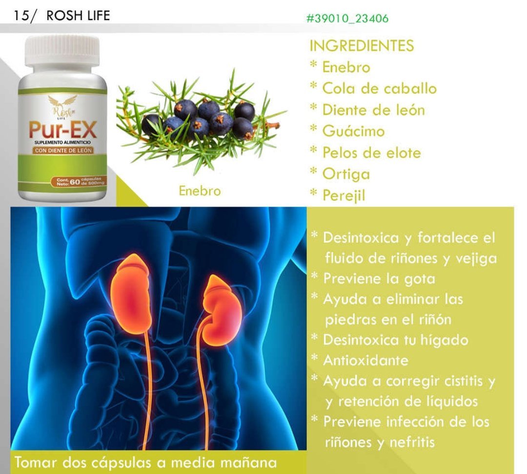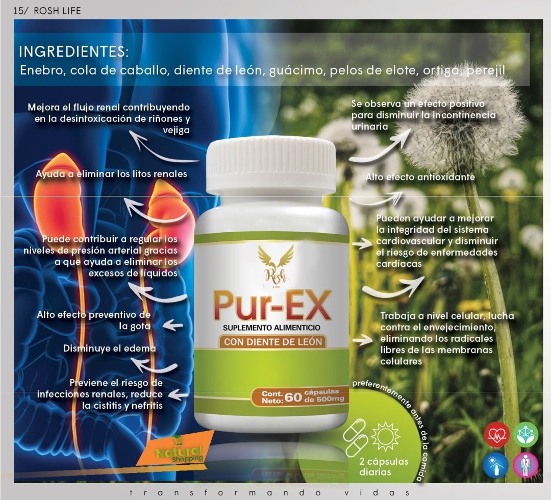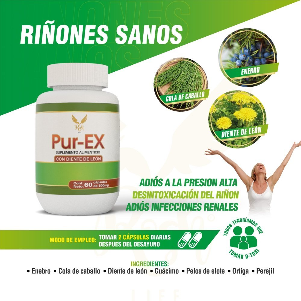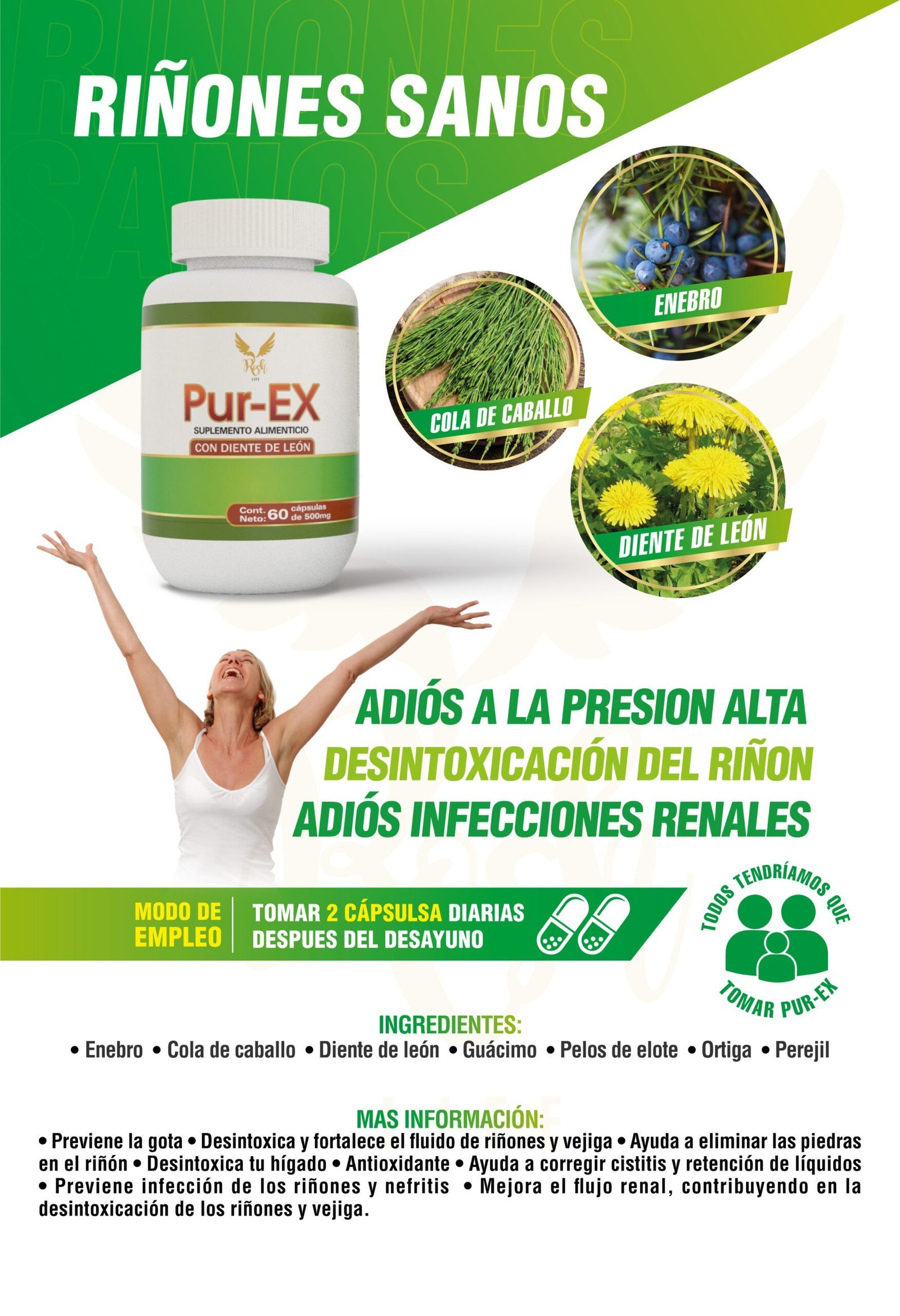 Desintoxica tus riñones, ayuda con la presión alta , SUPLEMENTO ALIMENTICIO Pur-EX Frasco de 60 cápsulas.