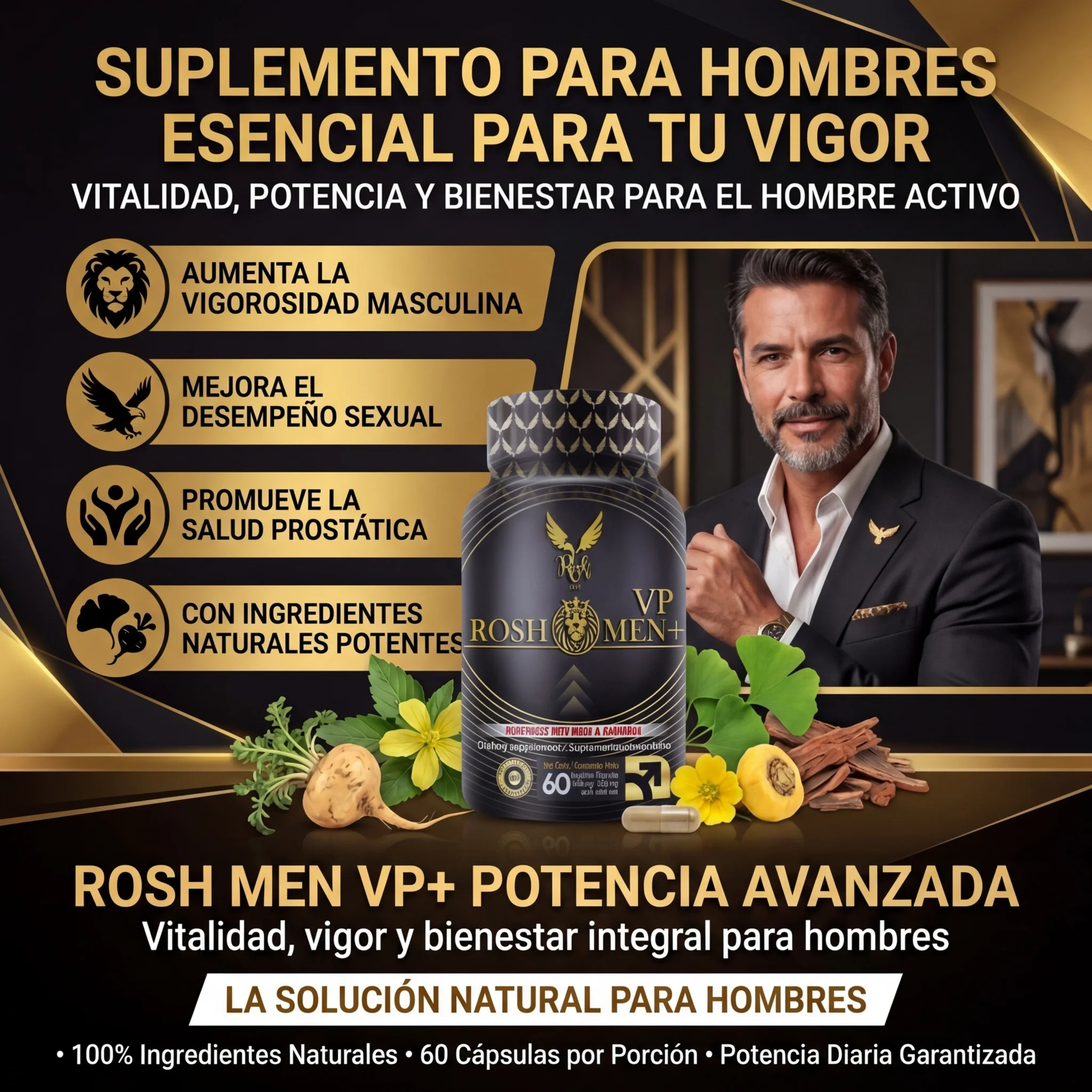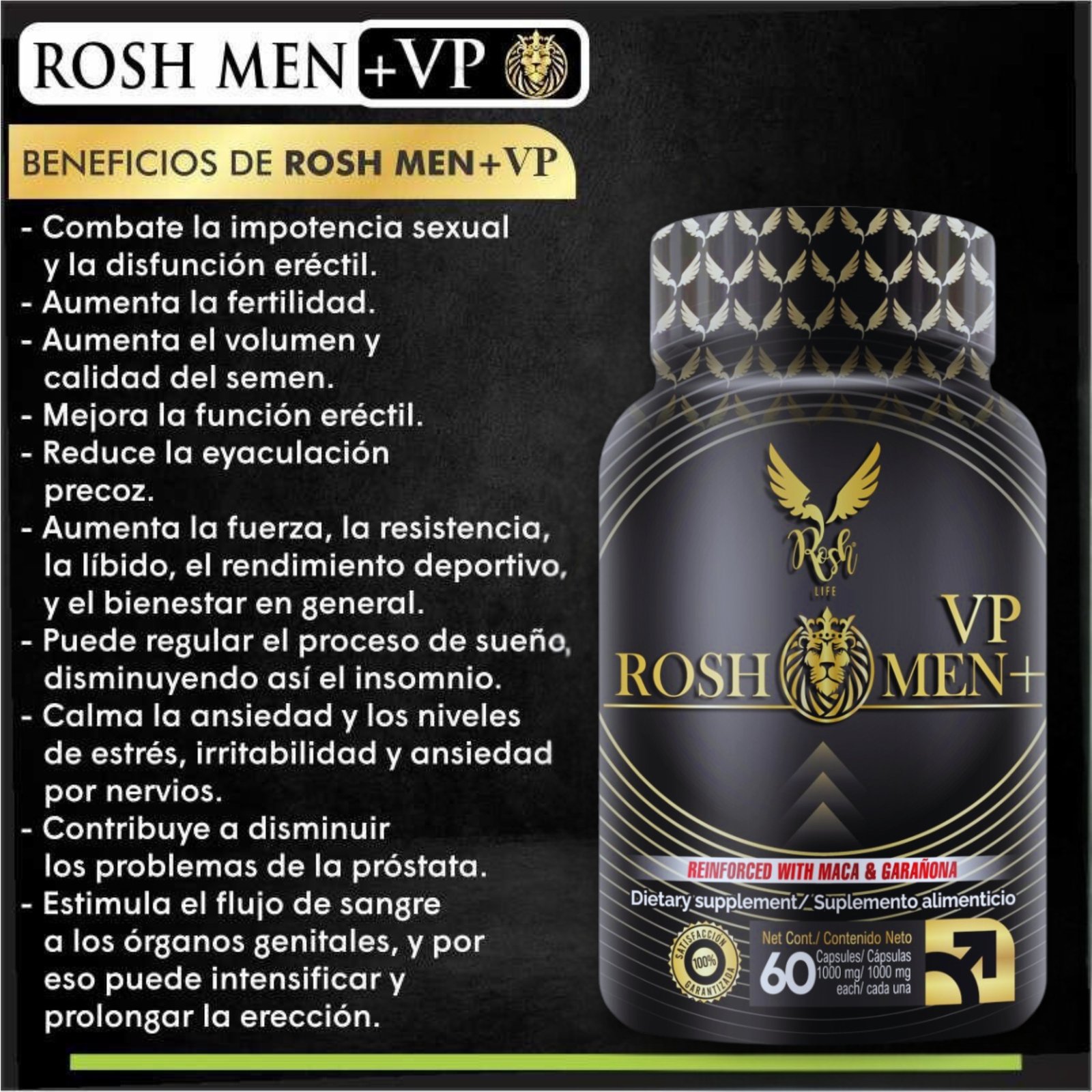 • POTENCIALIZA: Ayuda a tener ERECCIONES AL MÁXIMO RENDIMIENTO con ROSH MEN VP. Además, cuida TU SALUD PROSTÁTICA y Recupera esa RESISTENCIA de TUS DÍAS DE JUVENTUD.