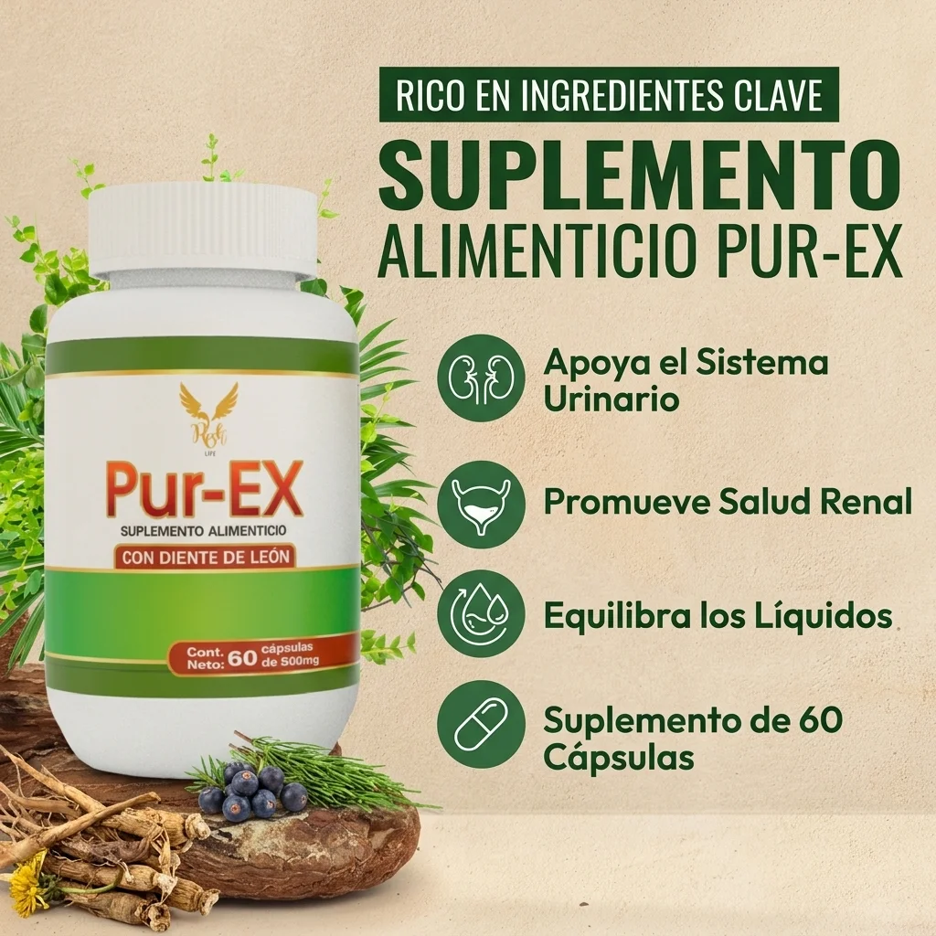 Desintoxica tus riñones, ayuda con la presión alta , SUPLEMENTO ALIMENTICIO Pur-EX Frasco de 60 cápsulas.