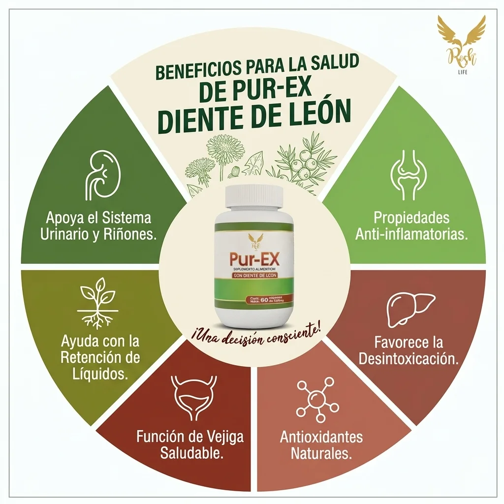 Pur-EX Suplemento Natural para Riñones | Diente de León | Bienestar Intestinal | Formula 100% natural | 60 Cápsulas